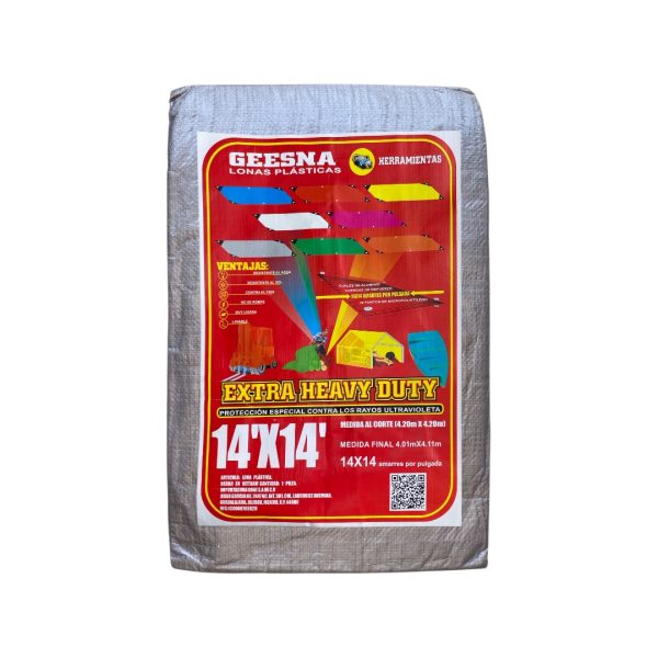 Lona plástica Geesna Extra Heavy Duty 4x4m, ultra resistente, impermeable y con protección UV para una mayor durabilidad al exterior. Ideal para cubrir autos, motos, maquinaria, materiales de construcción, herramientas, terrazas, campamentos, cargas en transporte y áreas expuestas a la lluvia o al sol. Perfecta para trabajos rudos y usos domésticos o industriales.
