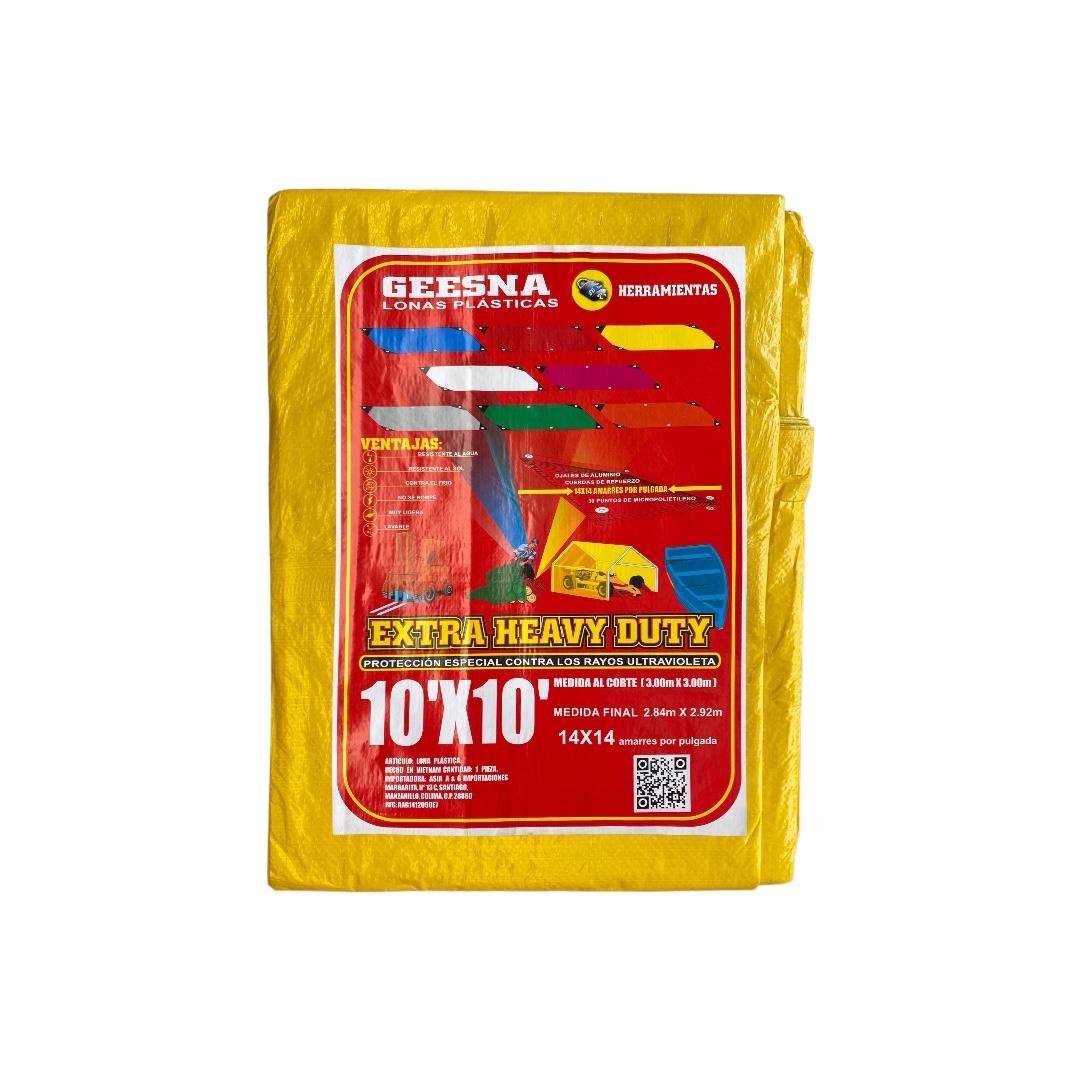 Lona plástica Geesna Extra Heavy Duty 3x3m, ultra resistente, impermeable y con protección UV para una mayor durabilidad al exterior. Ideal para cubrir autos, motos, maquinaria, materiales de construcción, herramientas, terrazas, campamentos, cargas en transporte y áreas expuestas a la lluvia o al sol. Perfecta para trabajos rudos y usos domésticos o industriales.
