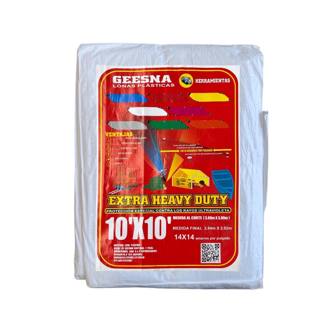 Lona plástica Geesna Extra Heavy Duty 3x3m, ultra resistente, impermeable y con protección UV para una mayor durabilidad al exterior. Ideal para cubrir autos, motos, maquinaria, materiales de construcción, herramientas, terrazas, campamentos, cargas en transporte y áreas expuestas a la lluvia o al sol. Perfecta para trabajos rudos y usos domésticos o industriales.