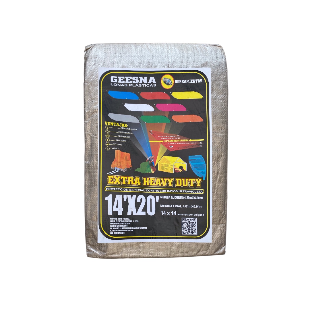 Cuenta con medidas finales aproximadas de 4m x 6m, y está equipada con amarres resistentes que facilitan una sujeción firme en cualquier aplicación. Su versatilidad la convierte en una herramienta indispensable en hogares, talleres, negocios, obras y actividades al aire libre.