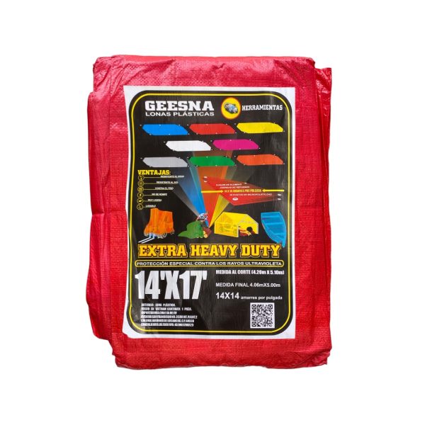 Lona plástica Geesna Extra Heavy Duty 4x5m, ultra resistente, impermeable y con protección UV para una mayor durabilidad al exterior. Ideal para cubrir autos, motos, maquinaria, materiales de construcción, herramientas, terrazas, campamentos, cargas en transporte y áreas expuestas a la lluvia o al sol. Perfecta para trabajos rudos y usos domésticos o industriales.