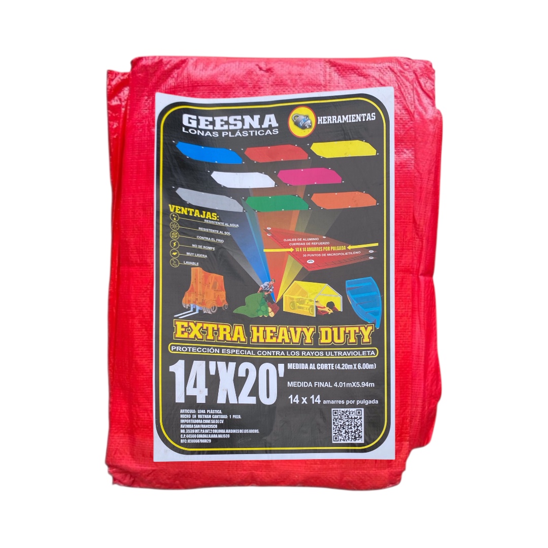 Lona Extra Heavy Duty Reforzada Roja 4x6m