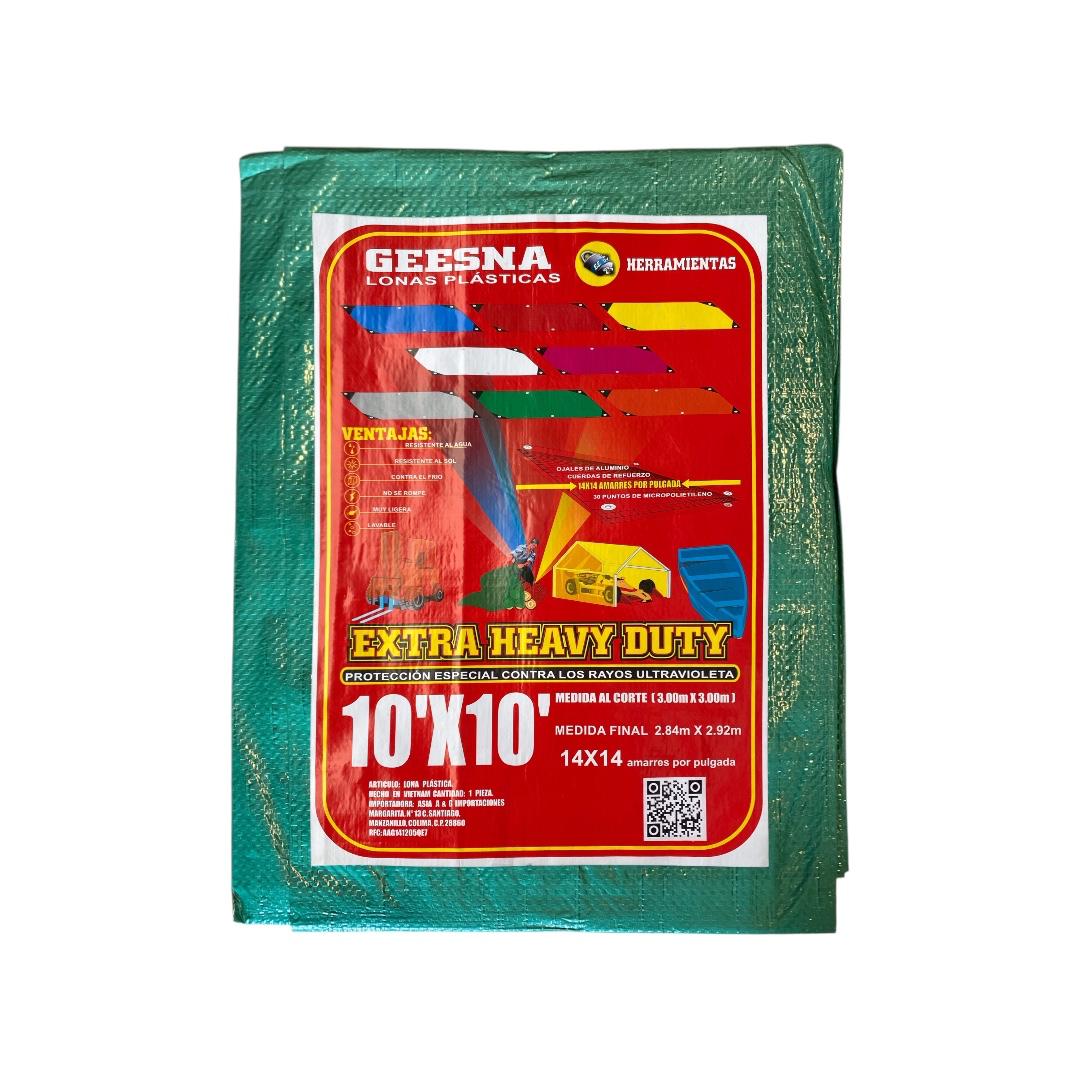 Lona plástica Geesna Extra Heavy Duty 3x3m, ultra resistente, impermeable y con protección UV para una mayor durabilidad al exterior. Ideal para cubrir autos, motos, maquinaria, materiales de construcción, herramientas, terrazas, campamentos, cargas en transporte y áreas expuestas a la lluvia o al sol. Perfecta para trabajos rudos y usos domésticos o industriales.