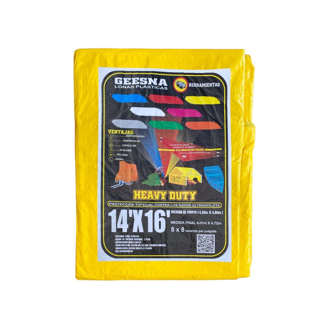 La lona Heavy Duty Geesna amarilla de 4×5 metros brinda una cobertura amplia y confiable para proteger materiales, equipos o vehículos. Fabricada con material resistente al agua, rayos UV y desgaste, mantiene un rendimiento óptimo en exteriores. Su tejido reforzado reduce el riesgo de roturas y los ojillos metálicos distribuidos permiten sujetarla con seguridad. Ideal para uso industrial, agrícola y comercial.