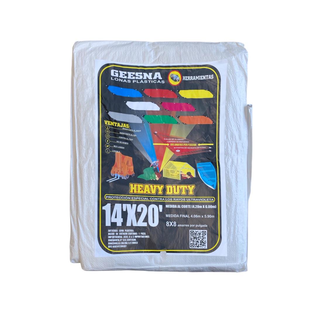 Lona plástica Heavy Duty Geesna Blanco de 4×6 metros, impermeable, resistente al sol y al polvo. Ofrece protección UV y cuenta con ojillos reforzados para una instalación firme y segura. Gran herramienta para cubrir y proteger tu mercancía de la intemperie.