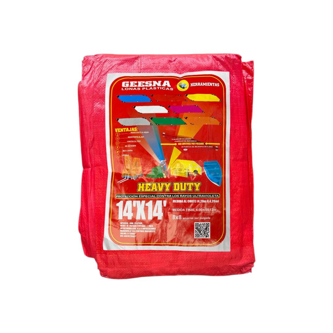 Lona plástica Heavy Duty Geesna Rojo de 4 x 4 metros, impermeable, resistente al sol y al polvo. Ofrece protección UV y cuenta con ojillos reforzados para una instalación firme y segura. Gran herramienta para cubrir y proteger tu mercancía de la intemperie.
